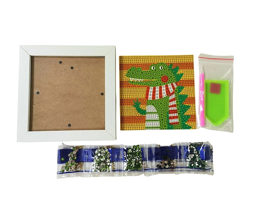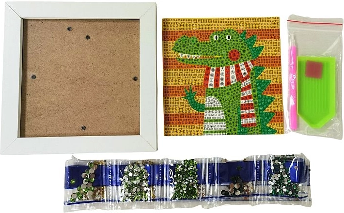 Descubre la divertida pintura con diamantes con motivo de cocodrilo, que desarrolla la motricidad fina, la paciencia y la creatividad. El set incluye todo lo necesario para crear fácilmente y conseguir una brillante decoración en un marco.