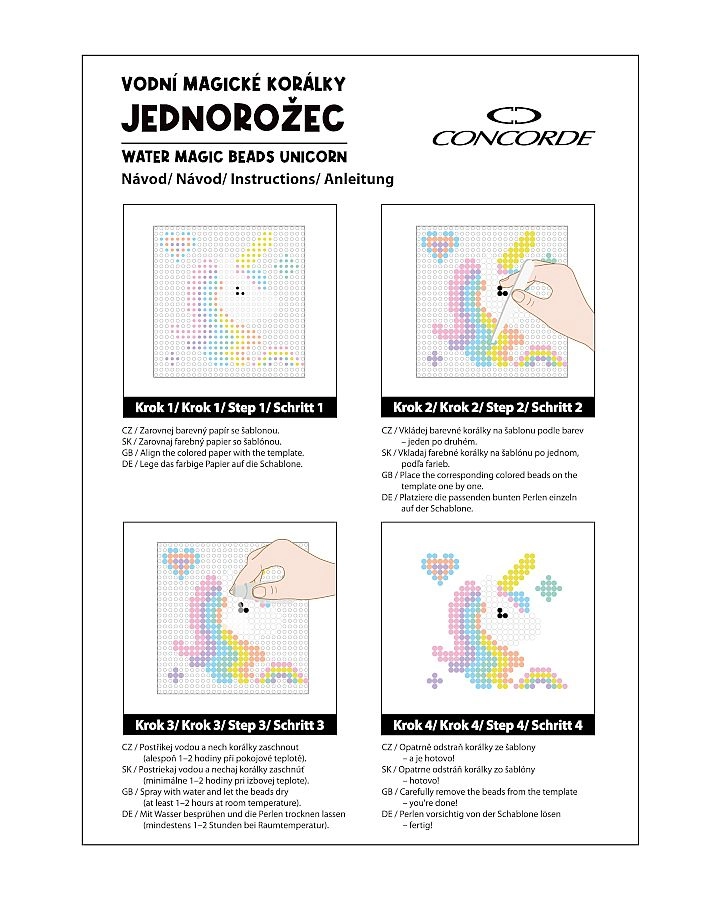 Este kit creativo es ideal para niños que aman crear y dejar volar la imaginación. Con la plantilla incluida, montarás fácilmente un adorable unicornio, o podrás diseñar tus propios motivos. Gracias a la tecnología de activación con agua, trabajar con las cuentas es seguro, limpio y sencillo, sin pegamento ni planchado.