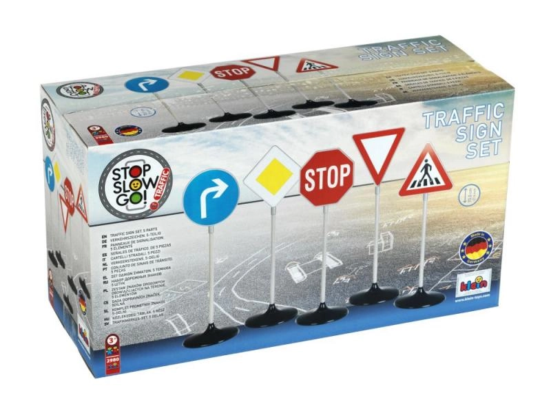 El set incluye cinco de las señales más utilizadas (p. ej., STOP, Ceda el paso, Carretera principal, Dirección obligatoria, Paso de peatones) y ayuda a los niños a asimilar rápidamente las normas básicas.