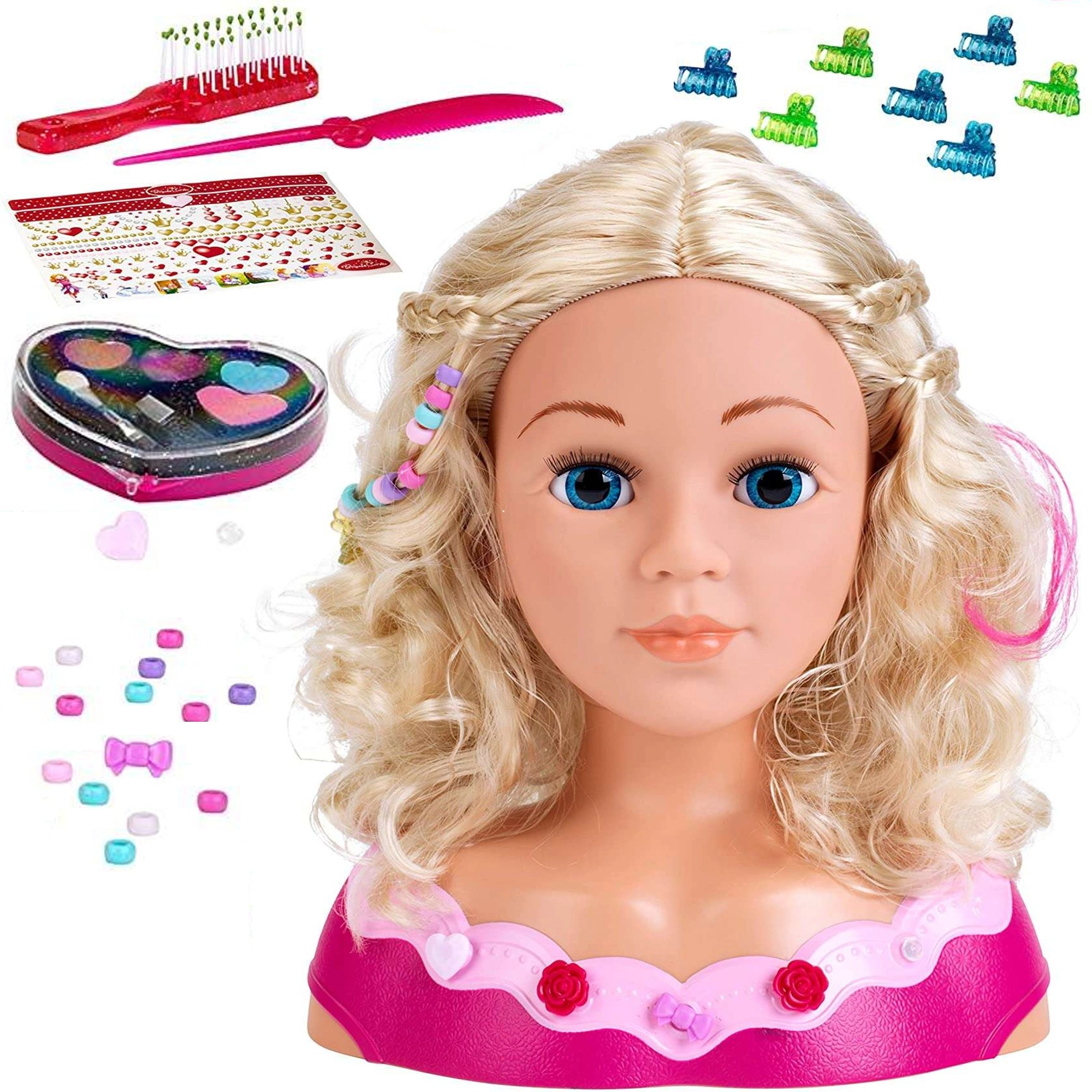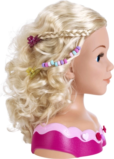 Gracias a la variada selección de accesorios, los niños pueden practicar el trenzado, la decoración con cuentas y clips de colores y experimentar con maquillajes brillantes. El juego fomenta la concentración, la paciencia y la coordinación ojo–mano, y además es una excelente idea para regalar.