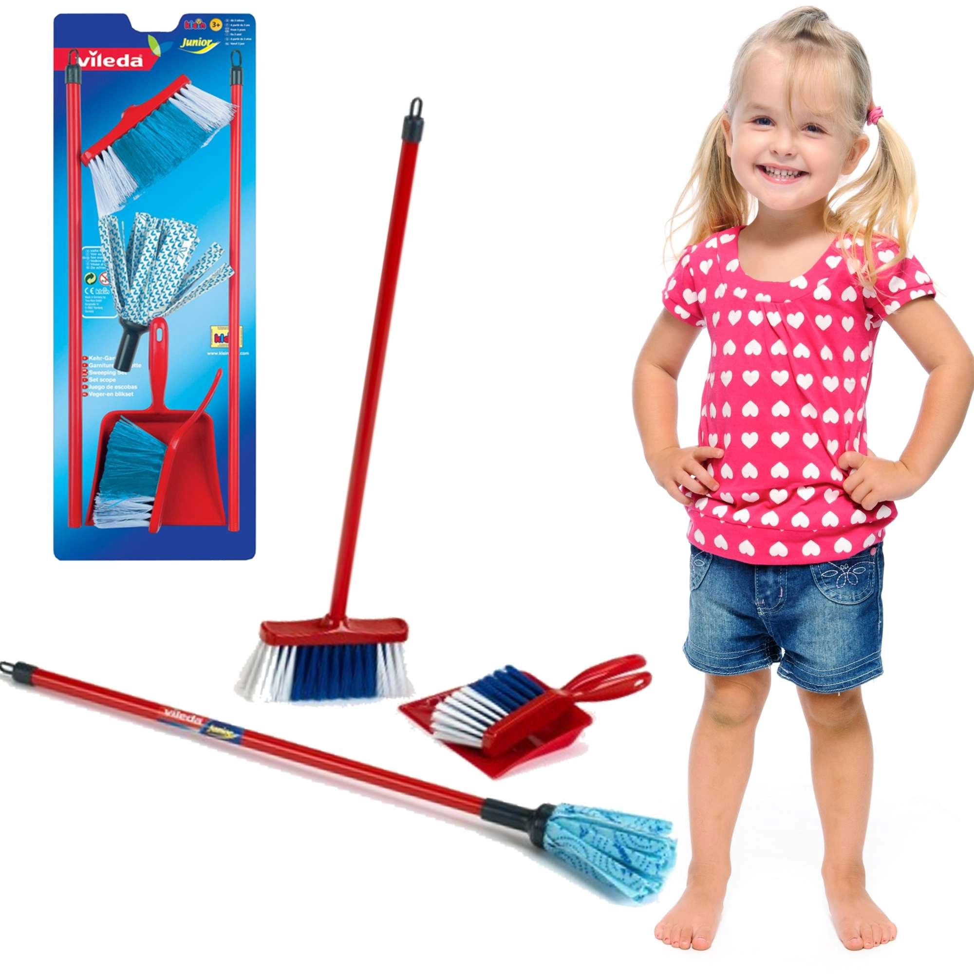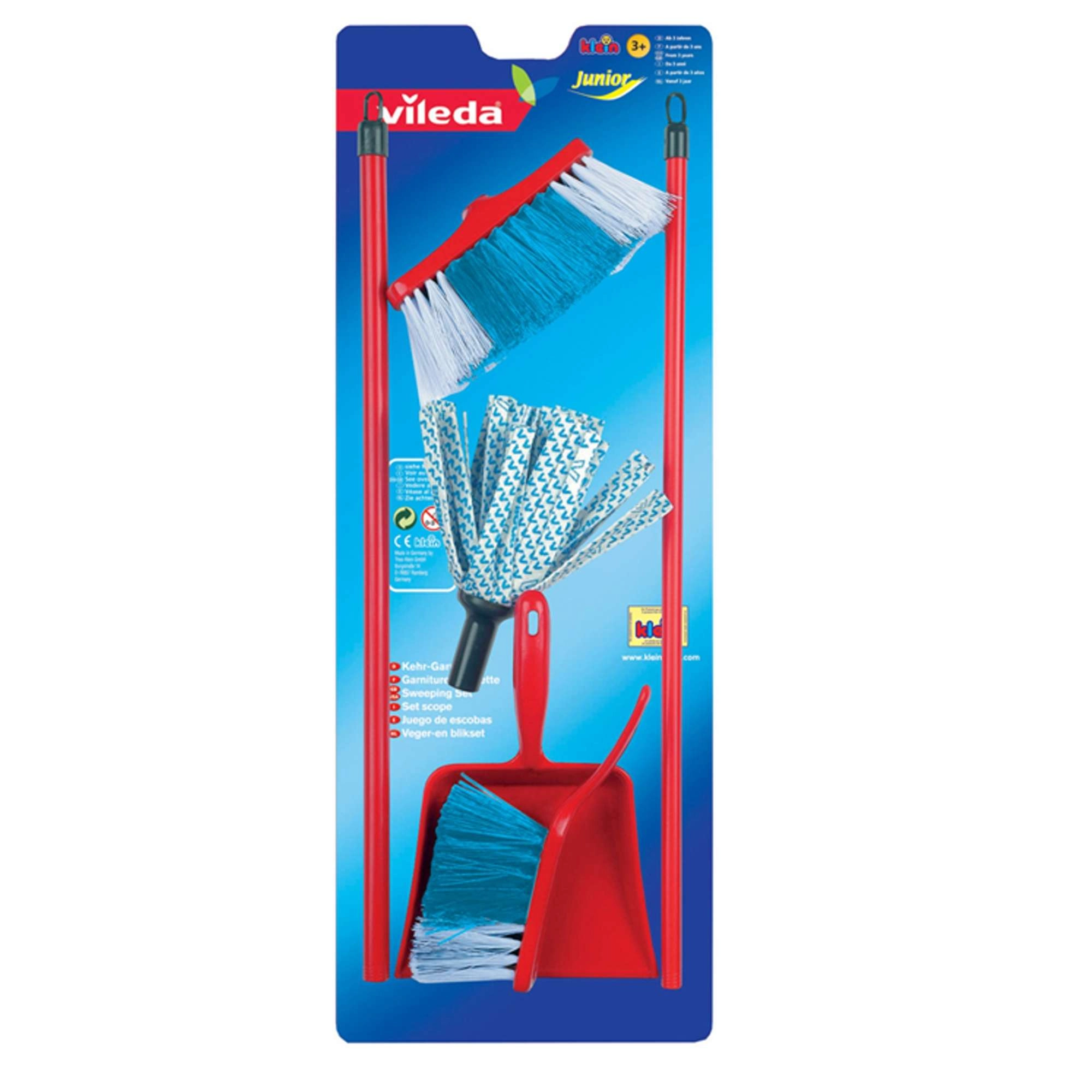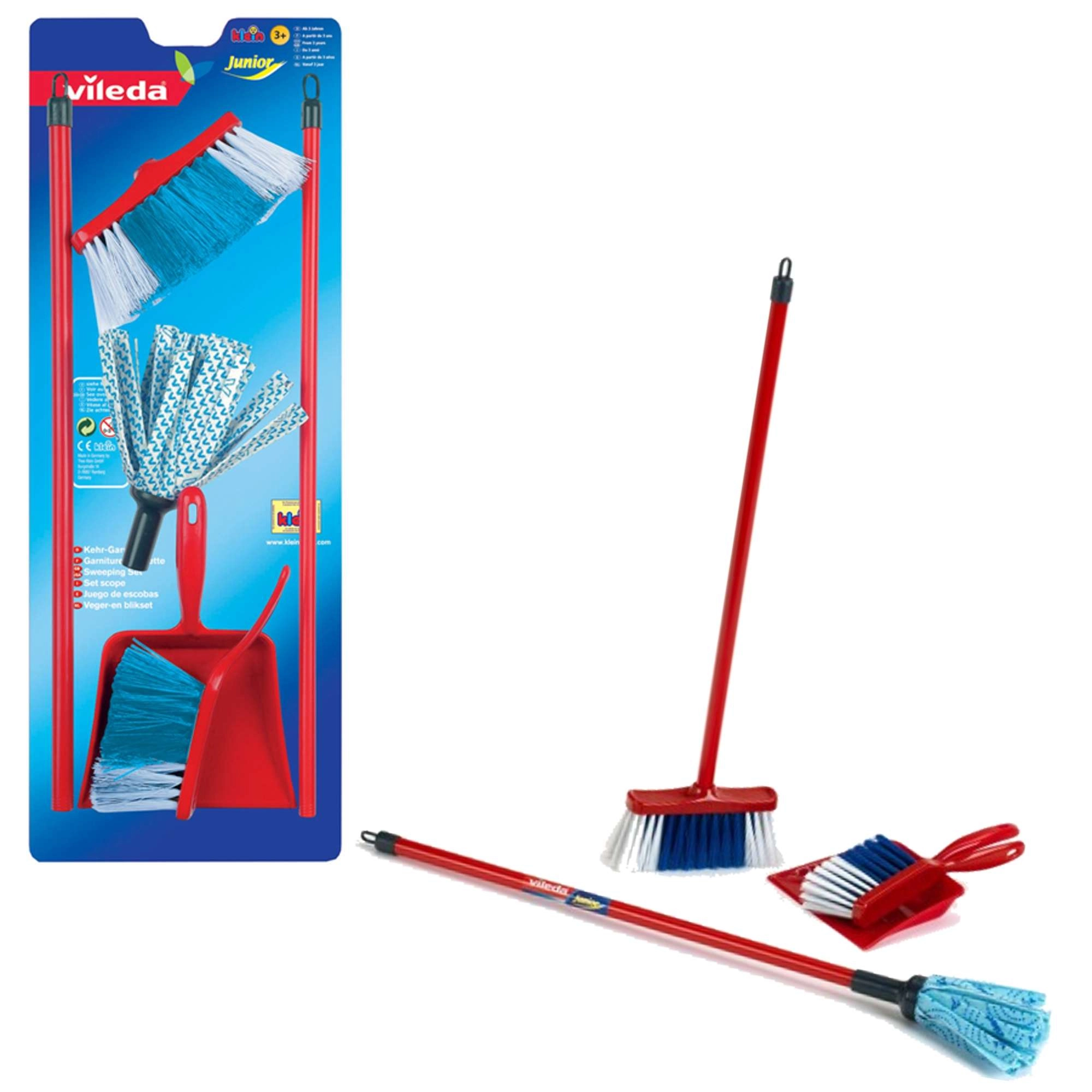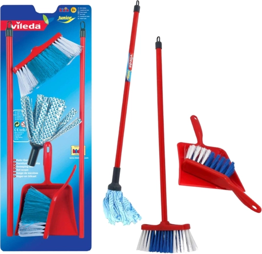 El realista juego de limpieza infantil con licencia de Vileda de la marca KLEIN encantará a los pequeños ayudantes que disfrutan imitando a los adultos. Incluye fregona, escoba, recogedor y cepillo de mano en una versión ligera con dimensiones adaptadas a los niños. Su bajo peso, fabricación resistente y diseño fiel a las herramientas de limpieza reales fomentan tanto la diversión como el aprendizaje del orden.