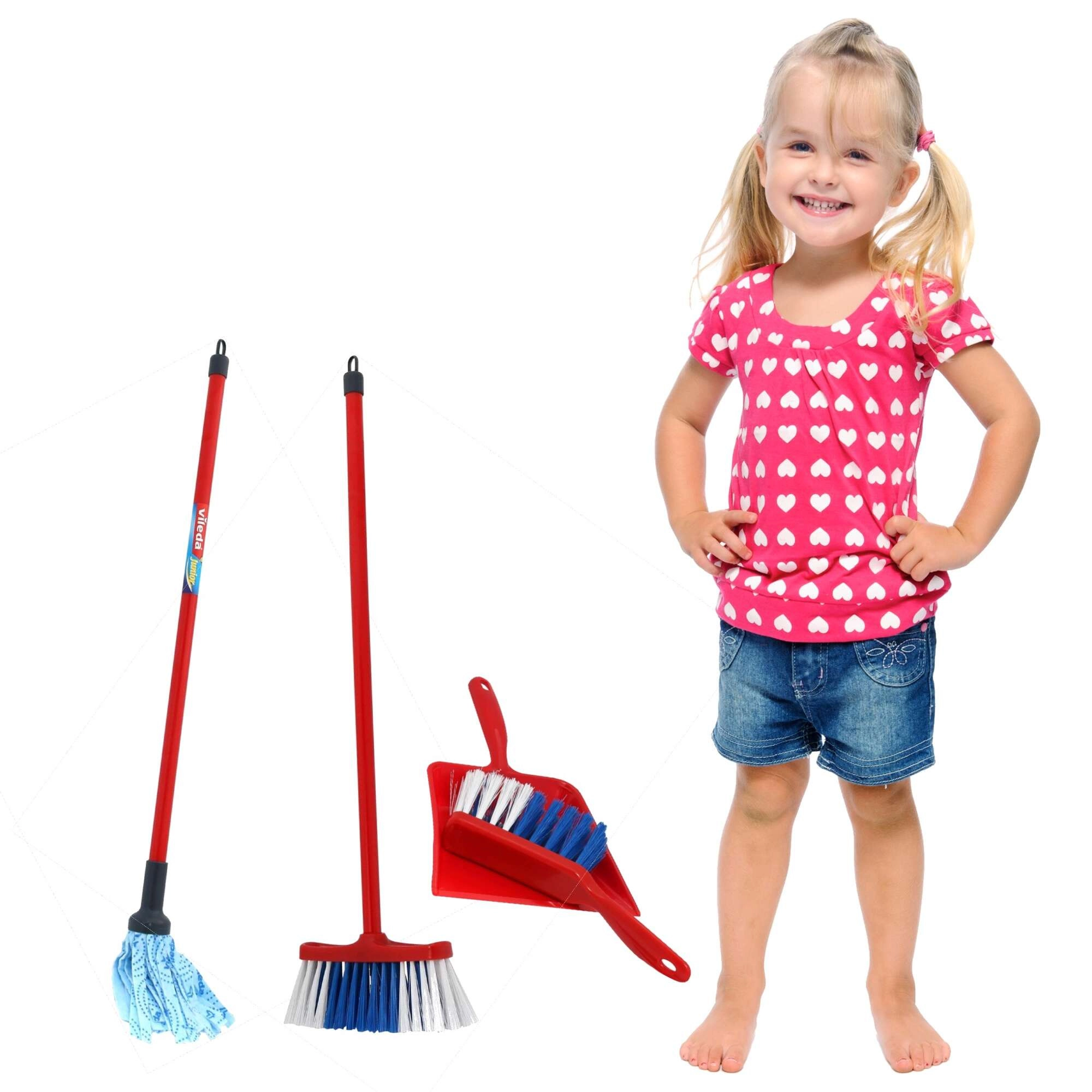 Este juego de limpieza para niños está fabricado con atención al detalle y es una fiel réplica de las herramientas originales de Vileda. Los niños pueden probar de forma segura actividades cotidianas como fregar y barrer, desarrollando de manera natural hábitos de cuidado del hogar.