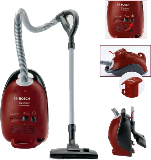 La aspiradora infantil BOSCH de Klein es una fiel réplica de una aspiradora real, diseñada para pequeños ayudantes a partir de 3 años. Ofrece efectos de sonido auténticos, un contenedor transparente y succión real del granulado incluido, para que los niños disfruten de un juego doméstico realista.