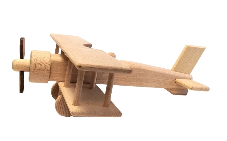 El avión está únicamente encerado y pulido para resaltar la veta natural de la madera y seguir siendo respetuoso con los niños y el medio ambiente.