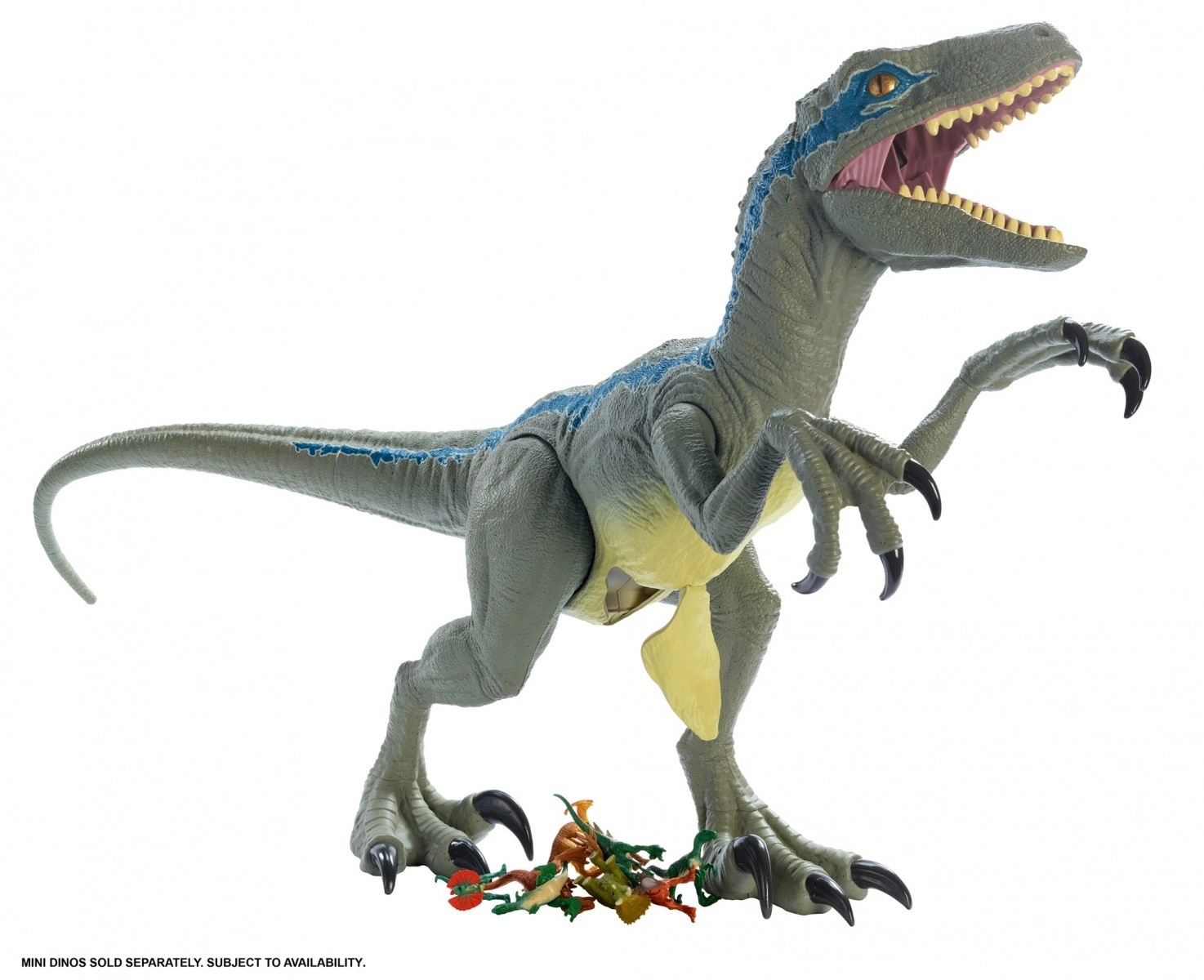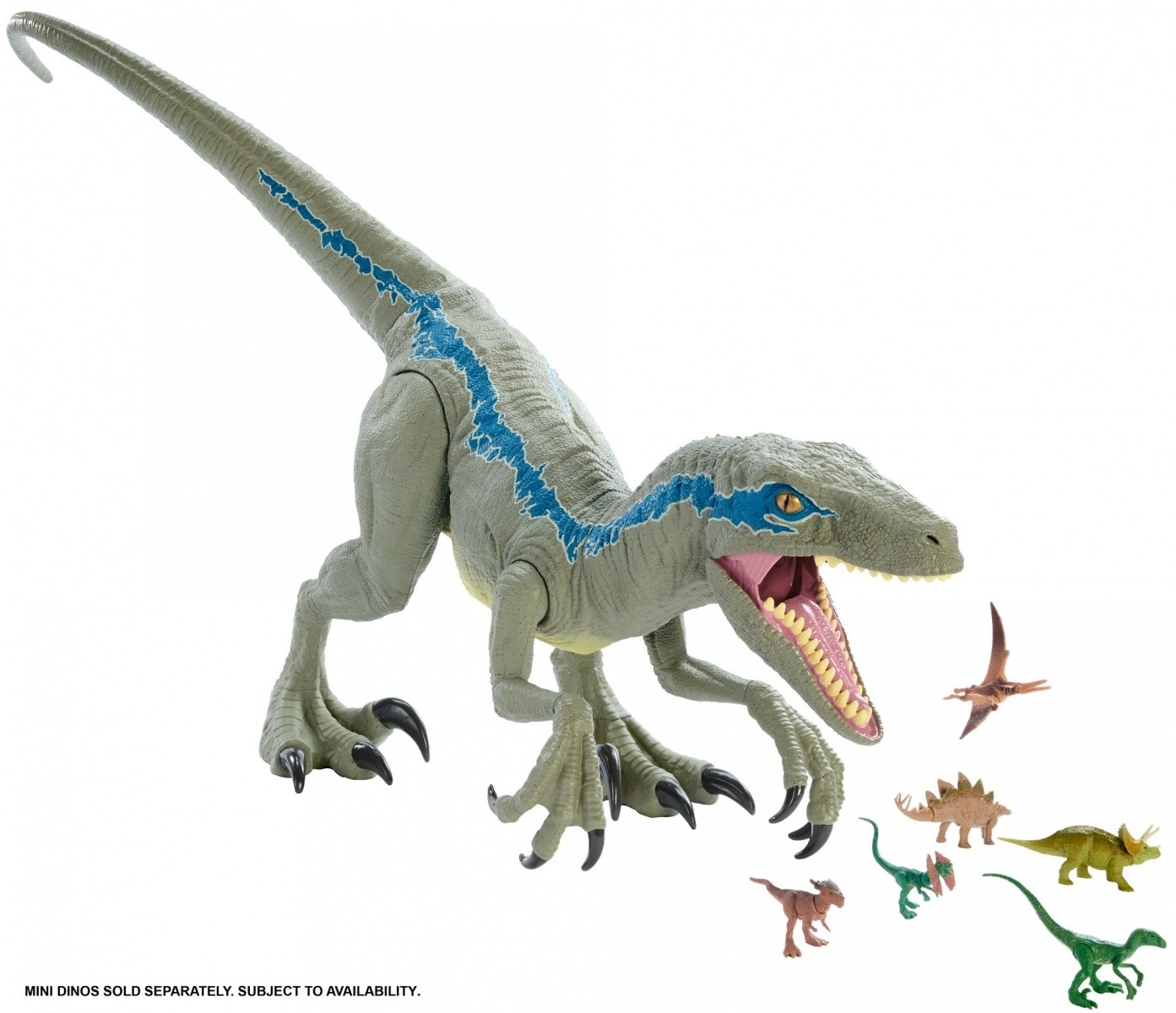¡Forma parte del mundo de JURASSIC WORLD con la figura gigante de Blue! Esta impresionante heroína raptor mide aproximadamente 45 cm de alto y 106 cm de largo, cuenta con textura de piel realista, la icónica franja azul y múltiples articulaciones para un juego de acción. Gracias a su mandíbula abatible y a una compuerta inteligentemente oculta en el vientre, Blue puede “tragarse” hasta 20 minifiguras de dinosaurios (se venden por separado). Detalles realistas, gran rango de movimiento y emocionantes posibilidades de juego encantarán a fans de los dinosaurios de todas las edades.