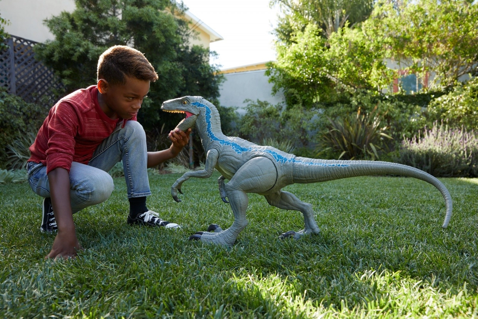 Blue mide aproximadamente 45 cm de alto y 106 cm de largo: el centro perfecto de cualquier mundo jurásico y un efecto wow instantáneo.