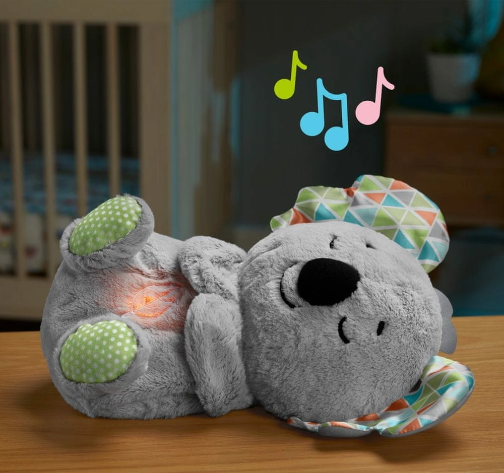 La adorable koala de peluche de Fisher-Price ayuda a los bebés a dormir gracias al ritmo de respiración realista, la música relajante y los sonidos de la naturaleza, y una suave luz multicolor en la barriguita. El juguete, súper suave, es fácil de mantener: tras extraer la electrónica es lavable a máquina y sus texturas variadas para el desarrollo sensorial atraen a las manos más pequeñas.