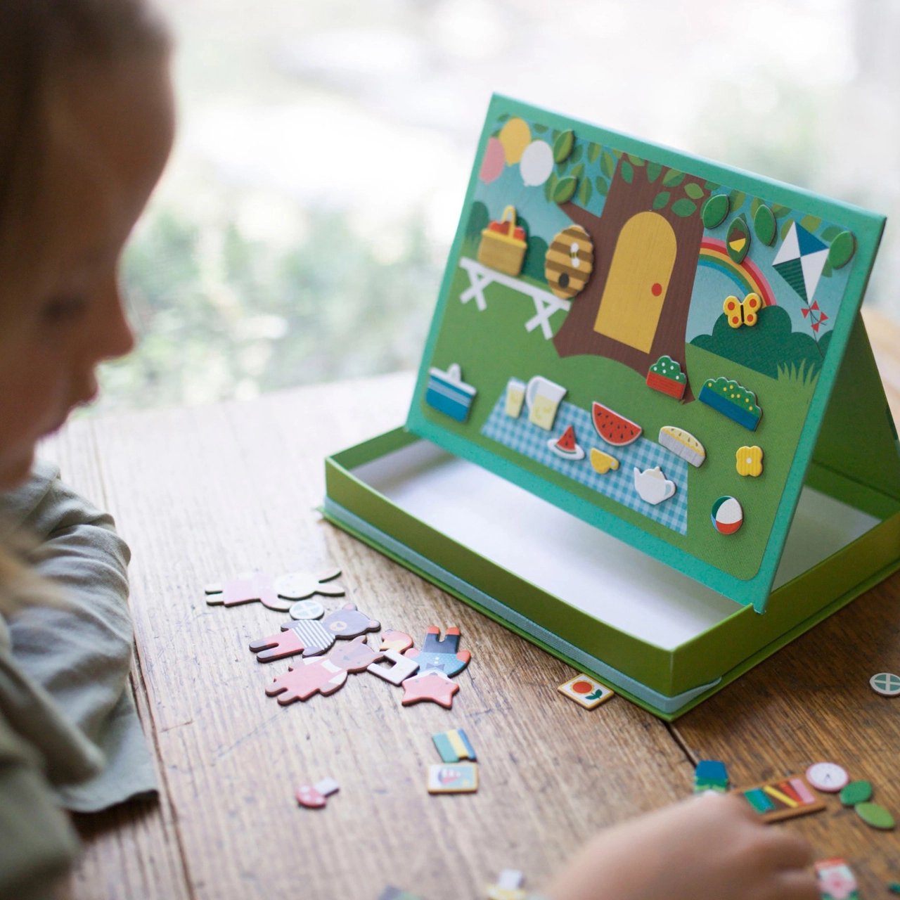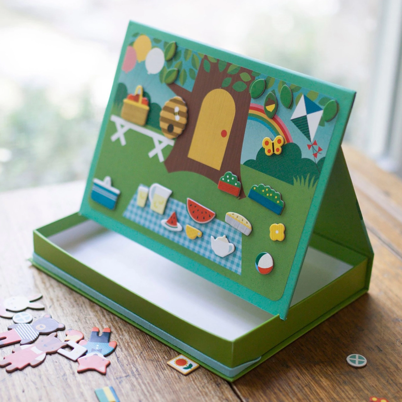 - 2 fondos magnéticos para un juego versátil: casa y picnic en el parque