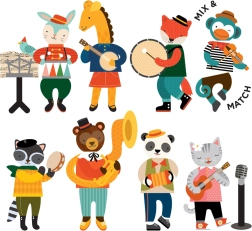 Divertido libro magnético para niños a partir de 3 años que presenta un mundo de adorables animales músicos. Con más de 25 piezas magnéticas, los niños pueden mezclar personajes, crear sus propias escenas y desarrollar la imaginación y la creatividad. La práctica caja de lata con dos escenarios interiores se cierra de forma segura, por lo que es un juguete ideal para viajes.