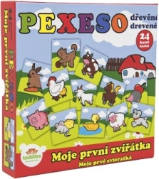 Memo de madera – Mis primeros animalitos TEDDIES es un juego de memoria bellamente ilustrado para niños. Las tarjetas de madera de calidad son agradables al tacto, resistentes y, gracias a sus colores vivos y encantadores motivos de animales, atraen a los pequeños al instante. El juego enseña a reconocer formas y colores, y desarrolla el pensamiento lógico y la paciencia.