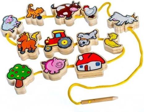 Este enhebrador de madera es una herramienta ideal para los más pequeños. Gracias a él, los niños aprenderán a reconocer animales checos tradicionales y sus crías. Las actividades lúdicas relacionadas con el enhebrado fomentan la narración de historias y enseñan a los niños no solo la paciencia, sino también el reconocimiento de colores.
