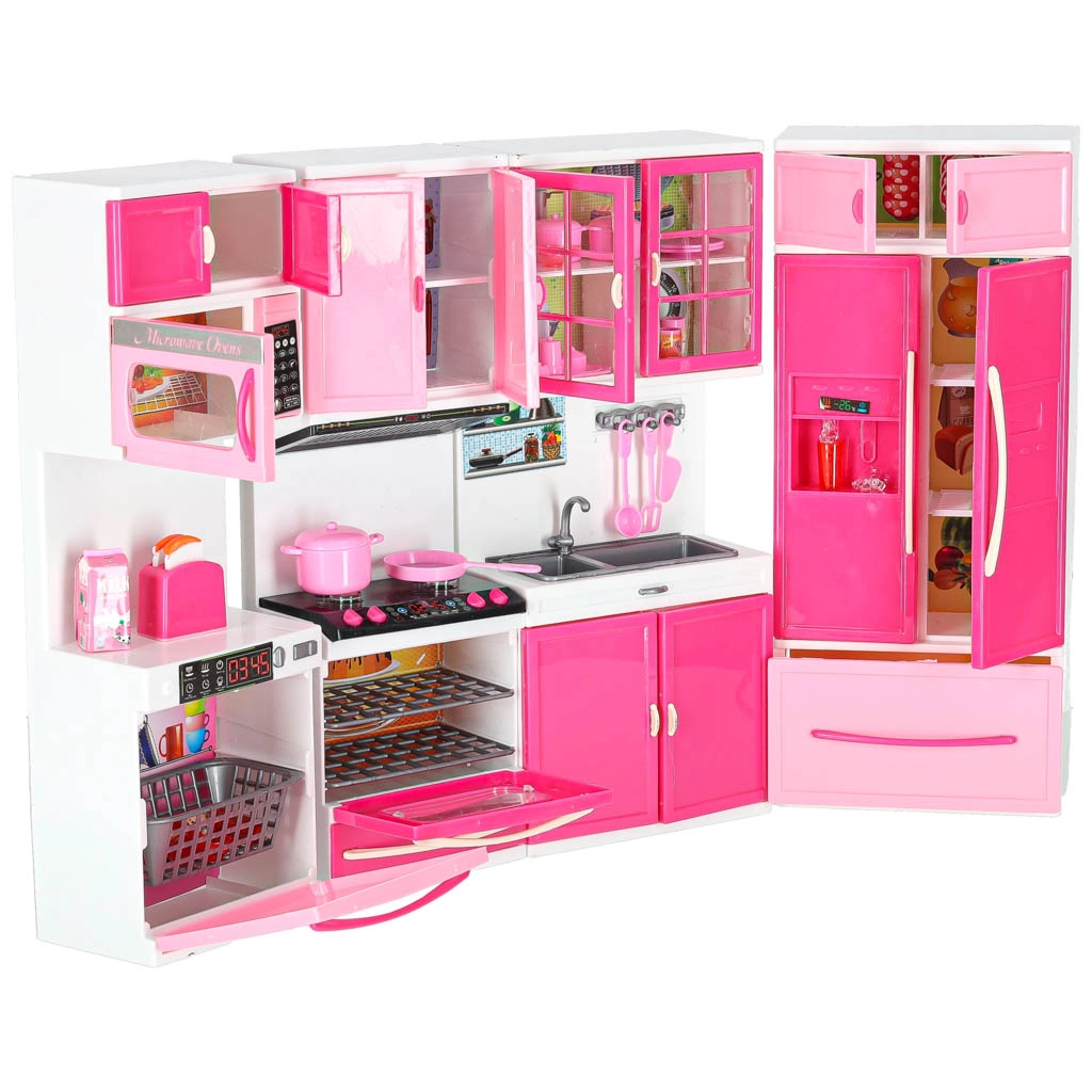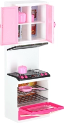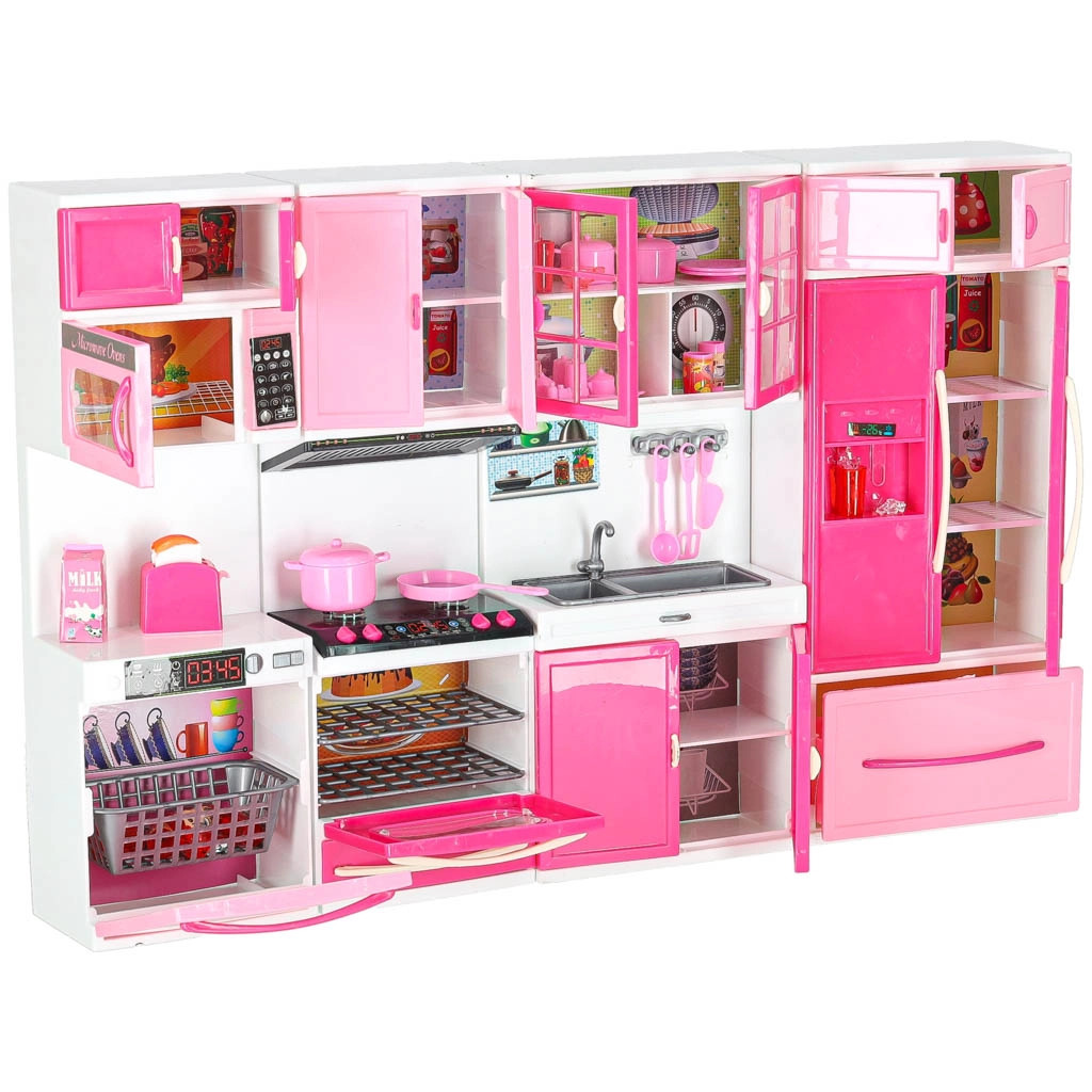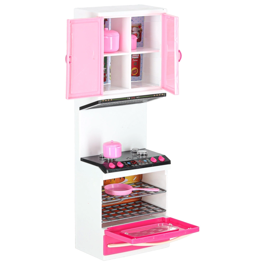 Esta moderna cocina para muñecas introduce a los niños en un mundo de fantasía e imitación de las actividades cotidianas. Cuatro segmentos conectados permiten montar una cocina completa con todos los elementos esenciales: desde la placa con horno hasta la nevera y el fregadero. Los quemadores con iluminación LED y los sonidos aportan un toque de realismo al juego de cocinar.