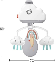 Lleva a la habitación infantil el Fisher-Price Carrusel para bebés con música y luz nocturna con motivo de nubes y tonos suaves, que irradia un diseño moderno y armonía. Este carrusel o dispositivo calmante es perfecto para los más pequeños que necesitan ayuda para dormirse.