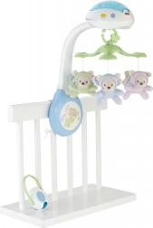 Cuando el bebé deja de usar el carrusel en la cuna, puede aprovecharse de nuevas maneras: como proyector de mesa para un sueño tranquilo o como carrusel fijable al cochecito. Sujétalo a la capota del cochecito para que el carrusel acompañe a tu pequeño en los paseos.