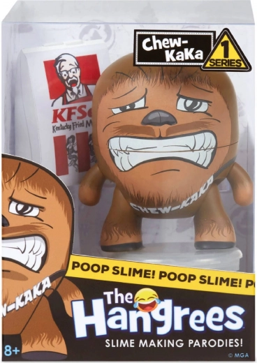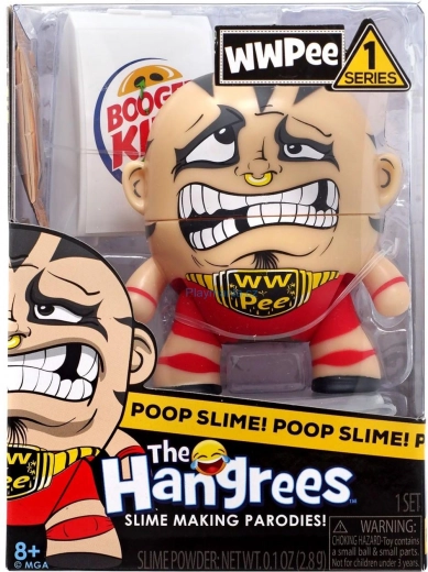 Hangrees Tragaldabas de la serie 1 aporta humor original y juego creativo. El niño alimenta la figura, la agita y en un momento se crea slime, que puede guardarse de forma segura en el mini inodoro incluido. Los divertidos accesorios y las referencias a marcas conocidas dan al juego un estilo único.