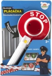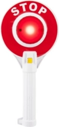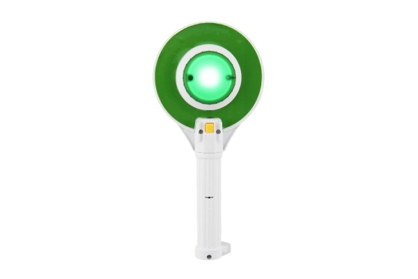 Esta paleta policial de plástico está equipada con una luz integrada que ilumina en rojo por un lado y en verde por el otro, enseñando a los niños los fundamentos de la circulación vial.