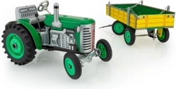 Este modelo único de tractor está impulsado por un mecanismo de resorte con cuerda y llave, lo que aporta un toque de autenticidad al juego. La caja de cambios funcional con tres velocidades hacia adelante y una marcha atrás permite a los niños manipular el modelo de forma realista. Pueden conducir mediante el volante y usar el freno de mano para detenerlo. Gracias a la escala 1:25, este modelo reproduce con precisión los detalles de un tractor real, lo que lo convierte no solo en un gran juguete, sino también en una pieza de colección.