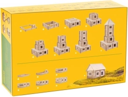 El kit de construcción Vario XL está fabricado con madera maciza de haya de alta calidad con un diámetro de 15 mm. Este set ofrece posibilidades creativas infinitas gracias a sus 184 piezas. Dentro encontrarás todo lo necesario para montar distintos modelos, incluidos listones de madera con sección de 9x9 mm, piezas para frontones y tejados, recortes de cartón para ventanas y puertas, y impresiones en papel para detalles precisos.