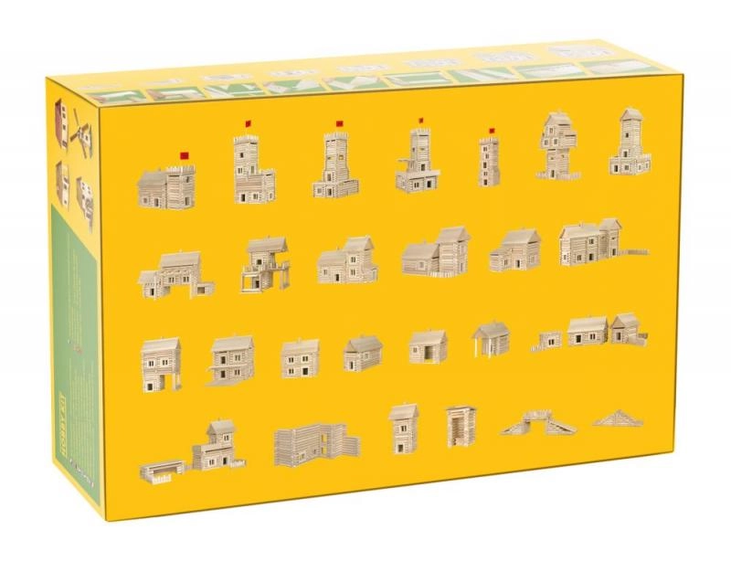 Con 209 piezas, crearás al menos 37 modelos diferentes. Todos los sets de la familia VARIO son completamente combinables: al conectar los sets VARIO y VARIO XL ampliarás las posibilidades de construcción hasta dimensiones realmente generosas. La superficie natural de la madera es agradable al tacto, duradera y estética, realzando el aspecto realista de “cabaña de troncos”.