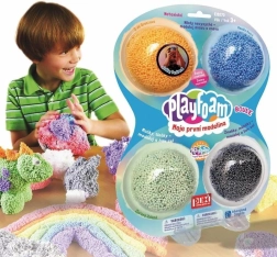 PlayFoam Boule es una masa de modelar espumosa compuesta por pequeñas bolitas suaves unidas por un aglutinante especial. Gracias a su composición no pegajosa, no se adhiere a las superficies y nunca se seca, ideal para modelar repetidamente en casa o durante los viajes. El paquete incluye cuatro colores “para niños”: naranja, azul, verde y gris.