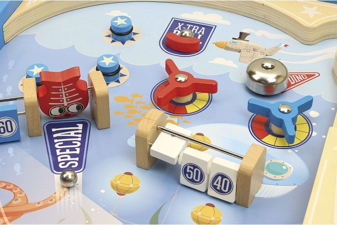 El pinball de madera VILAC ofrece una experiencia atemporal con una fabricación de calidad. La colorida superficie de juego con un pulpo, un submarino y parachoques con puntuación motiva a los niños a afinar la puntería y la estrategia. Puedes empezar a jugar de inmediato: el paquete incluye 3 bolas de metal y todo lo necesario para un juego fluido.