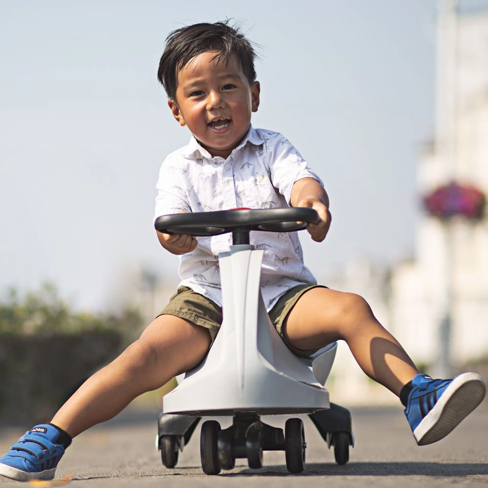 El Didicar gris es un ingenioso correpasillos que se mueve sin cadenas, motor ni baterías: basta con girar el volante de lado a lado. Gracias a su bajo centro de gravedad, asiento cómodo y base estable, la conducción es fluida y segura tanto en interiores como en exteriores sobre asfalto u hormigón. La certificación para los mercados europeo y estadounidense refuerza el enfoque en la seguridad y la calidad.