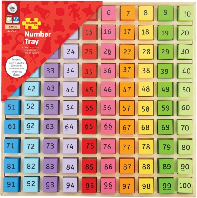 Bigjigs Toys aporta diversión y aprendizaje con sus números de madera en bandeja. Este juguete está destinado a niños a partir de 3 años y es ideal para el desarrollo de las habilidades de conteo. Incluye 100 piezas, números del 1 al 100, que están diferenciados por colores, lo que favorece el reconocimiento de números y colores.