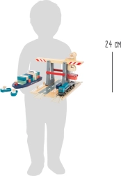 Este ingenioso set portuario ofrece a los niños un juego logístico realista: el barco con dos remolcadores está listo para zarpar, mientras la grúa trasborda contenedores de colores gracias a imanes integrados. Las piezas de madera robustas y los elementos funcionales suaves fomentan la motricidad fina, la imaginación y la paciencia.