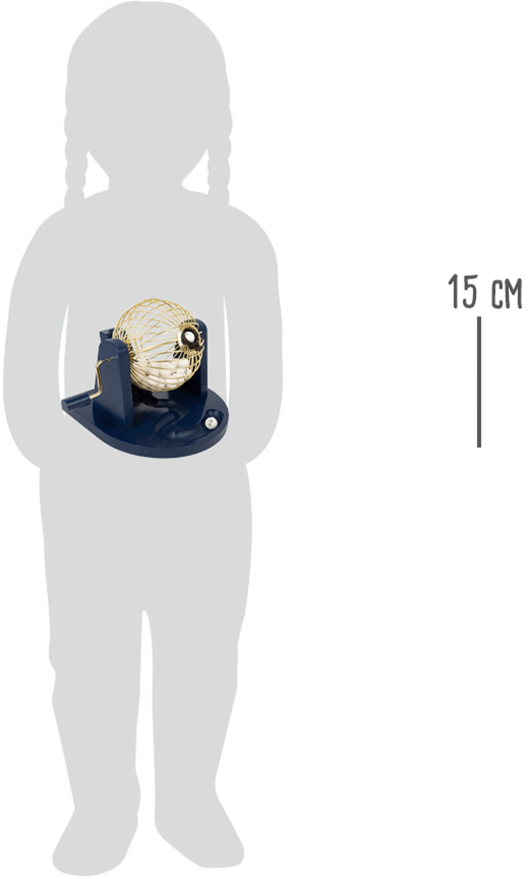 Este juego completo de Bingo trae todo para jugar de inmediato: bombo de sorteo metálico con manivela, bolas numeradas, cartones y fichas de colores. Los jugadores van marcando los números extraídos en sus cartones y quien primero complete una línea horizontal, vertical o diagonal de cinco, grita “¡BINGO!”.