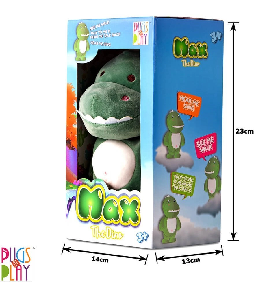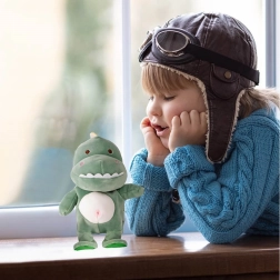 Dinosaurio interactivo Max verde es un compañero adorable para tus hijos, que no solo es suave y agradable al tacto, sino que también les enseña nuevas palabras y ofrece diversión repitiendo lo que oye con una voz chillona.