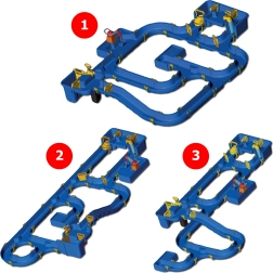 - 2 bombas y una cámara conectada a un canal con gran ángulo de inclinación. La longitud total es de 175 cm.