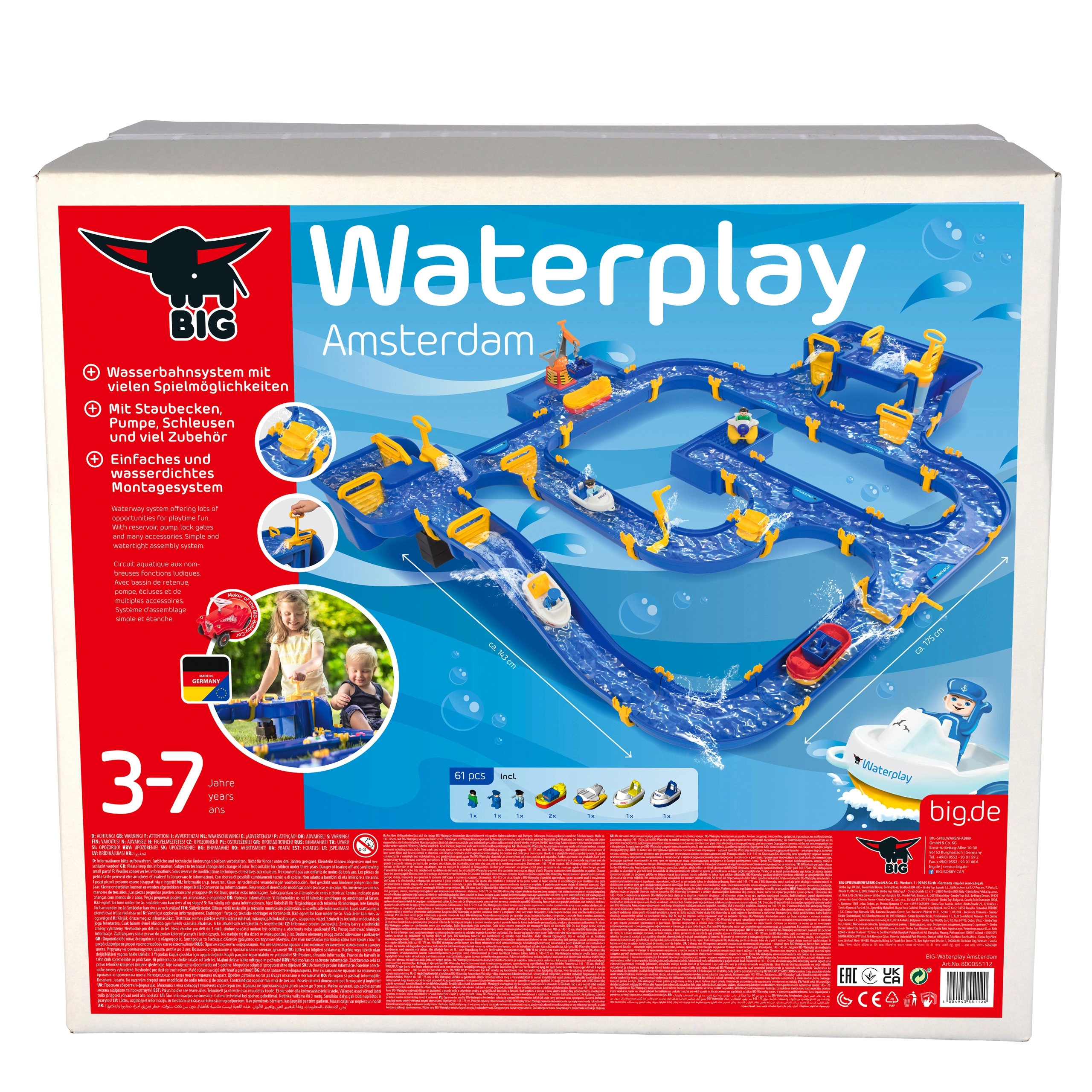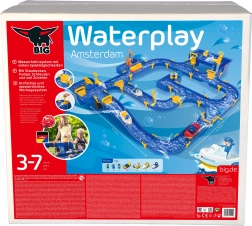 Amsterdam Waterplay es ideal para los niños que aman jugar con agua. Las corrientes de agua pueden crearse moviendo la rueda y el flujo se controla llenando los canales.