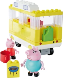 Emprende con Peppa y su papá una aventura de fin de semana en una cómoda autocaravana. Los niños pueden abrir el vehículo, organizar la zona de asientos, cocinar en la cocinita, preparar té y montar la barbacoa. Colores vivos, piezas grandes y adorables accesorios invitan a historias sin fin.