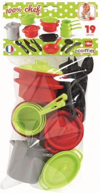 El juego de utensilios de cocina incluye todos los elementos necesarios para tus aventuras culinarias, incluyendo ollas con tapas, cazos y una sartén.