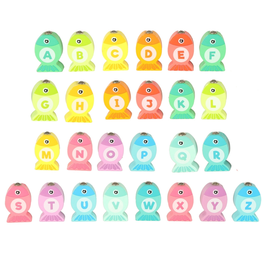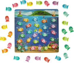 Sumérgete en un mundo submarino mágico y disfruta de diversión sin fin con el juego de pesca de peces de madera. Este juego educativo ayuda a los niños a aprender letras, colores y a contar. Los peces marcados con letras deben colocarse en los huecos correctos y también pueden pescarse con la caña magnética. Todo el proceso ayuda a desarrollar la concentración y la paciencia.