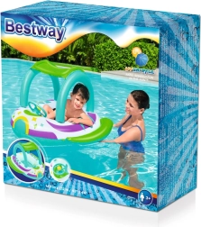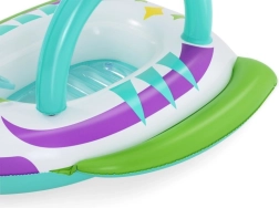 La divertida barca inflable BESTWAY Space Splash para niños a partir de 3 años ofrece juego seguro en el agua, toldo desmontable con protección UV, suelo inflable con ventanilla peek‑a‑boo y volante con claxon. Su diseño “espacial” y las asas cómodas garantizan horas de diversión en la piscina, el lago o el mar.