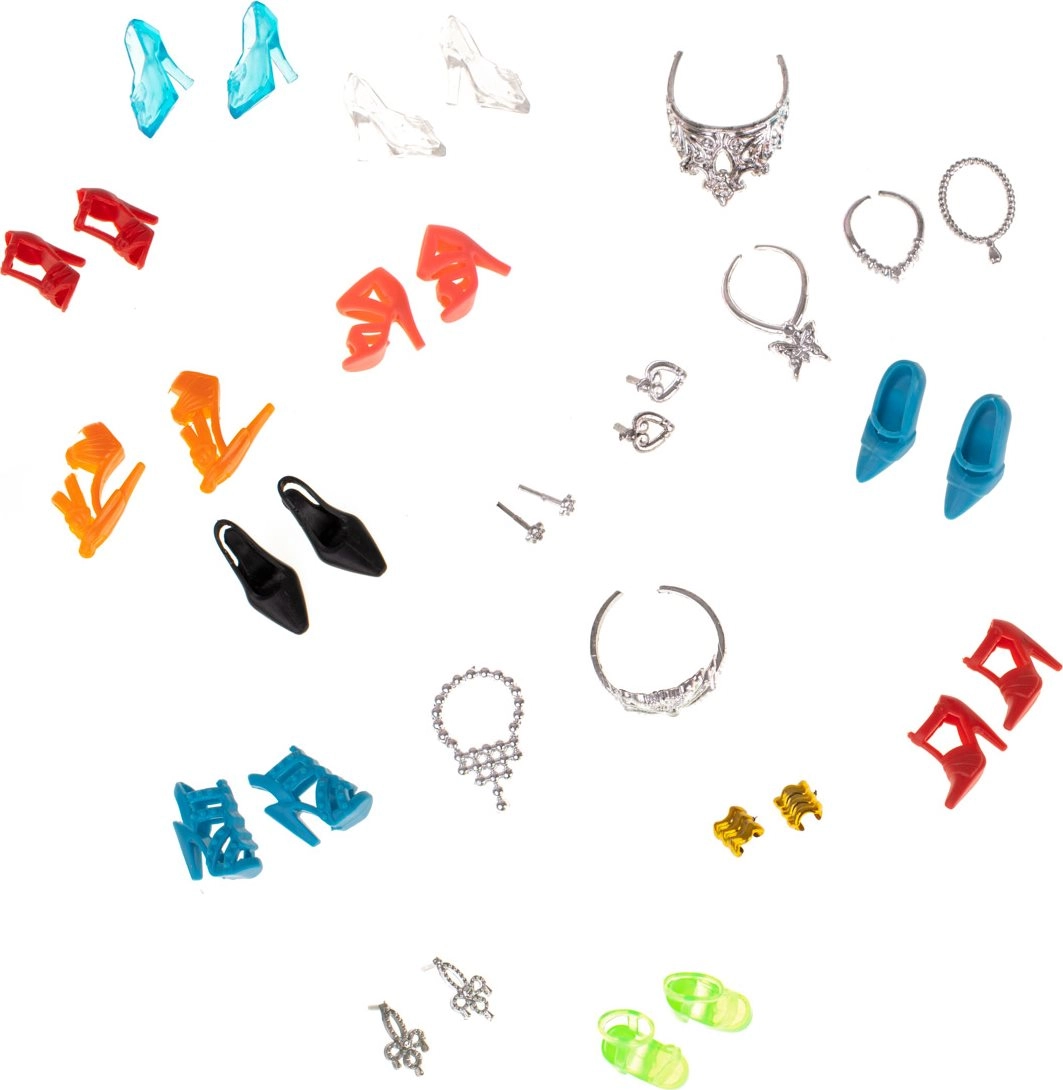 El set incluye 10 vestidos de diferentes colores, diseñados para adaptarse a cualquier muñeca. Además, incorporamos una amplia gama de accesorios como zapatos, bolsos y coronas, que brindan infinitas posibilidades de estilismo.