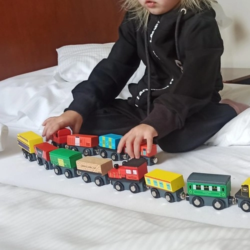 El ferrocarril de madera enseña y entretiene al mismo tiempo. Ayuda a desarrollar habilidades importantes, como la estimulación visual y el pensamiento espacial.