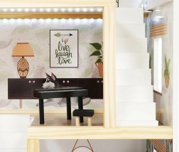 - Casa para montar, set de muebles y accesorios, papel tapiz para el ático, iluminación LED