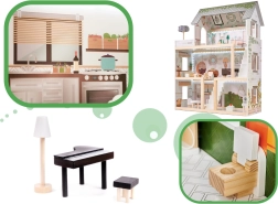 La seguridad es lo primero: todos los bordes están suavemente lijados y la combinación de tablero MDF de alta calidad, uniones firmes y estructura estable garantiza una larga durabilidad. La paleta pastel y terrosa armoniza con los dormitorios infantiles modernos y convierte la casa en un elemento de diseño llamativo.