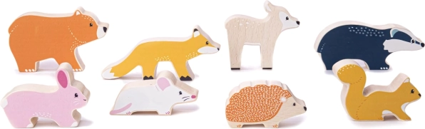El divertido y educativo set de animales del bosque de madera ofrece una forma original de desarrollar las habilidades infantiles. Gracias al cuidadoso diseño de cada animal, los niños no solo aprenden a reconocer formas y colores, sino que también entrenan la motricidad fina apilando los animales. Este producto está fabricado con madera 100% certificada FSC, lo que garantiza que su producción es respetuosa con el medio ambiente. Al comprar este set, ayudas a proteger los bosques y a apoyar la gestión sostenible de los recursos naturales.