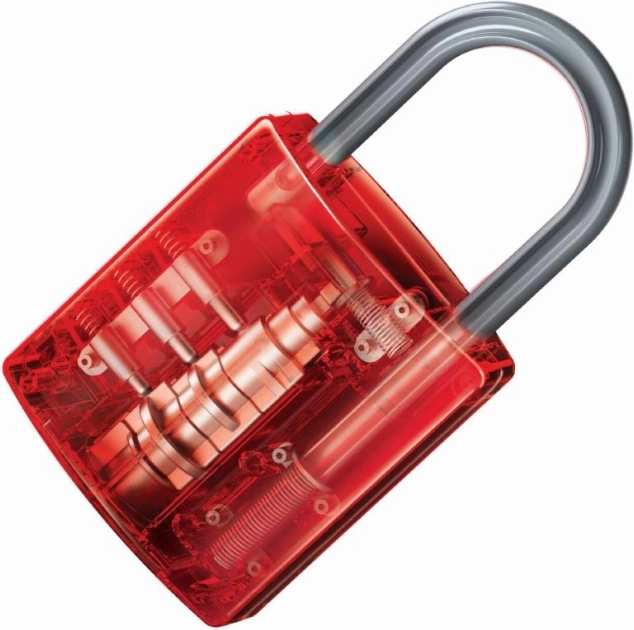 El diseño del candado permite observar todos los componentes visibles y comprender su función.