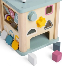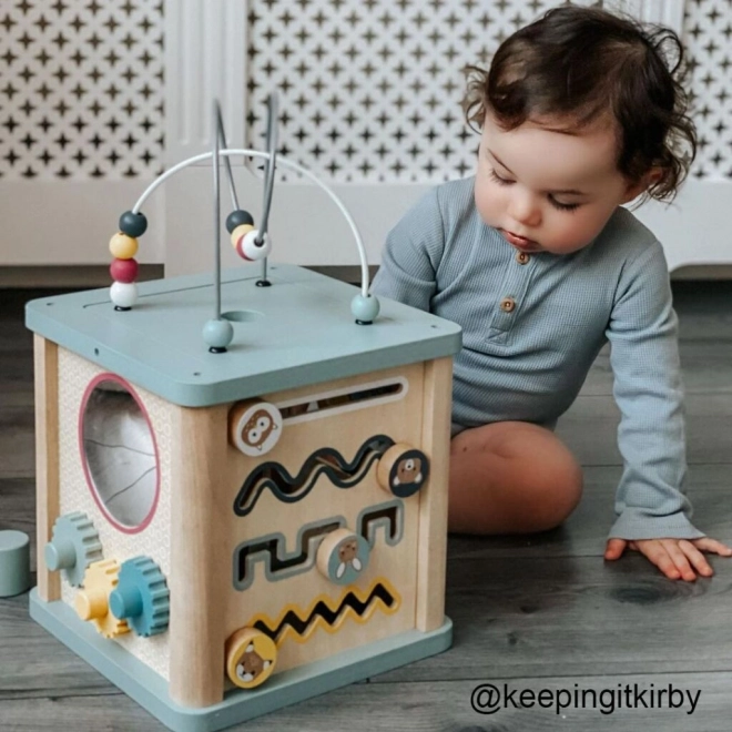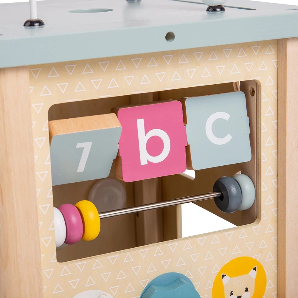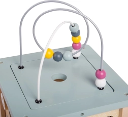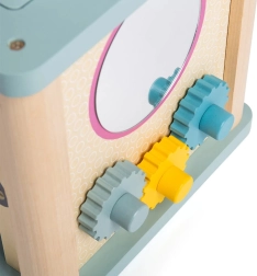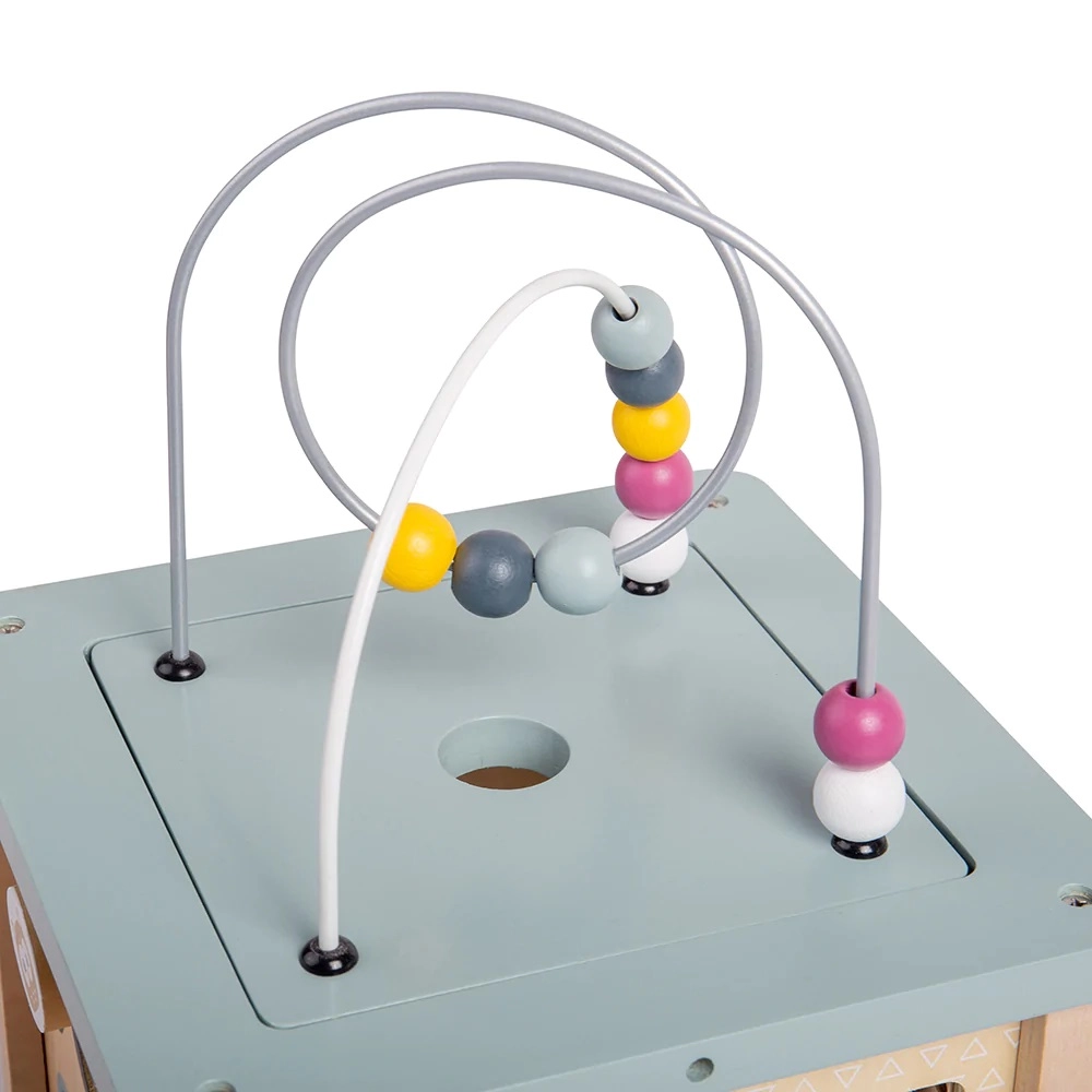 Descubre un versátil cubo motriz de madera 100% FSC de alta calidad que mantendrá a los peques entretenidos durante horas. En cada lado les espera una actividad diferente: encajables, circuito de bolitas, engranajes y más. La combinación de madera natural y suaves colores pastel es ideal tanto para niños como para niñas. Este juguete favorece el desarrollo de la motricidad, la comunicación y el reconocimiento de números y es seguro para los niños gracias a materiales sostenibles con certificación FSC.