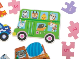 Los medios de transporte con coloridos personajes de animales animarán cada rompecabezas y atraerán la atención de tu hijo.