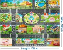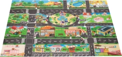 La gran alfombra impermeable para niños con estampado de ciudad es ideal para el juego creativo. Está fabricada en plástico, similar al hule, lo que facilita su mantenimiento y limpieza. Gracias a su bajo peso y posibilidad de plegado, se puede transportar fácilmente y usar también fuera de casa, por ejemplo, en un picnic.