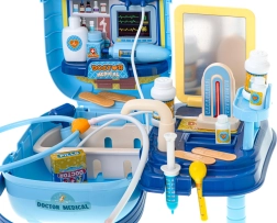 Set de doctor para niños en un práctico maletín que convierte cualquier juego en una consulta médica. Juguete creativo que ayuda a los niños a aprender herramientas y procedimientos médicos básicos. Gracias al maletín portátil, los niños pueden jugar al doctor en casa o en casa de amigos.