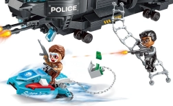 Construye la moto de persecución y en pocos instantes transfórmala en una rápida moto acuática. La acción pasa de la carretera al agua sin pausas.