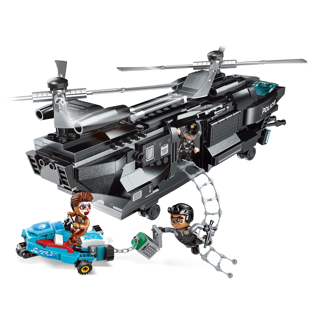 Entra en el mundo de las misiones de acción con una unidad policial que no da tregua a los delincuentes. El helicóptero con rotores funcionales y una escalera de cuerda desplegable permite un desembarco relámpago en el corazón de la acción, mientras el perseguido huye en un vehículo transformable: de moto a moto acuática en cuestión de segundos.