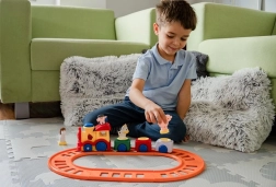 Manipular el tren y construir la vía ayudan a los niños a mejorar la coordinación mano-ojo, entrenando la motricidad fina en un entorno lúdico.