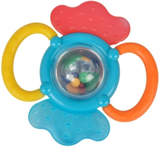 Combinación de sonajero y mordedor en uno, ideal para bebés a partir de 3 meses. Ofrece diversión y favorece el desarrollo sensorial del niño.